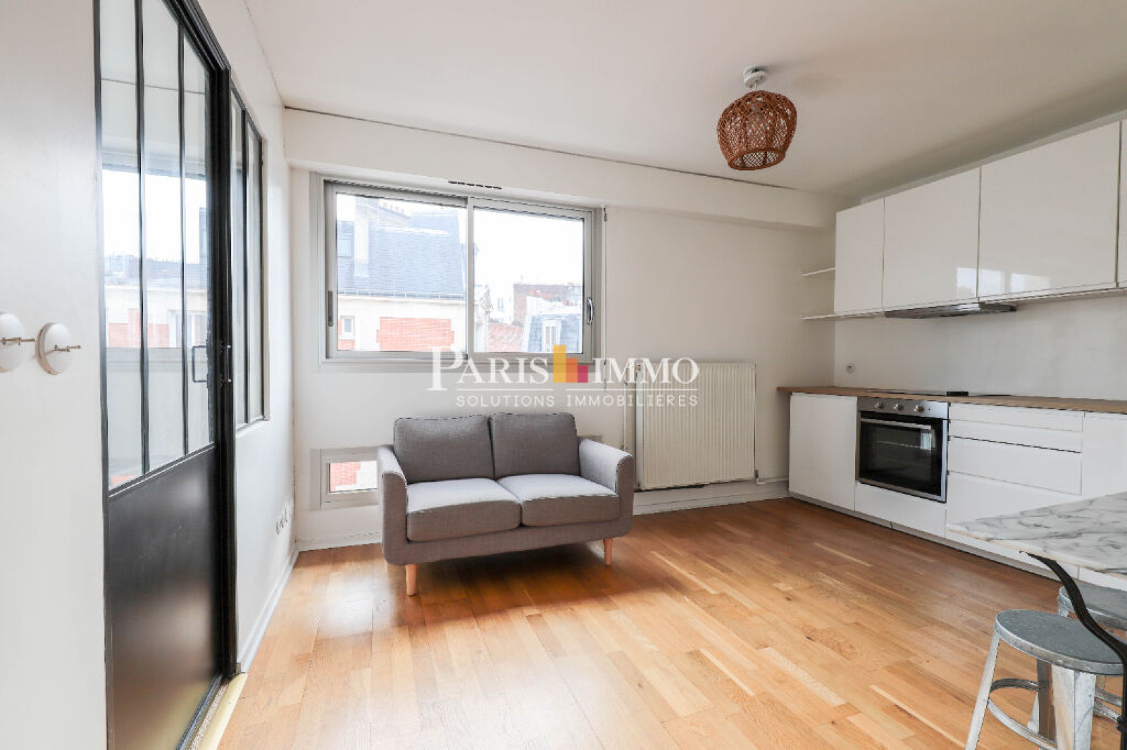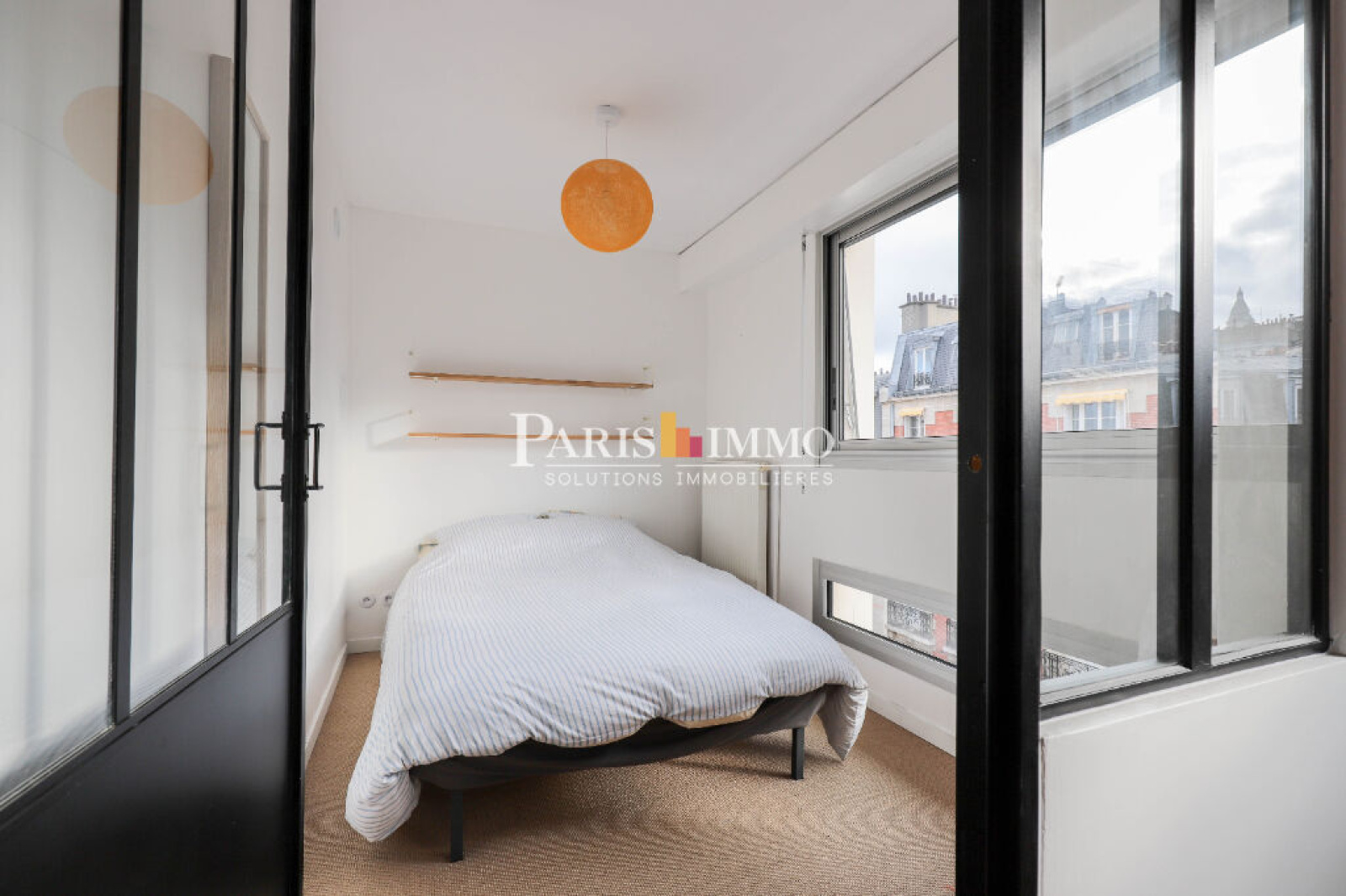 PARIS IMMO vous propose en exclusivité, secteur Lamarck, rue des Cottages, au 6ème et dernier étage avec ascenseur un charmant 2 pièces de 27m2, composé d'une entrée avec placards, d'un séjour avec cuisine ouverte, une chambre et une salle d'eau avec wc.