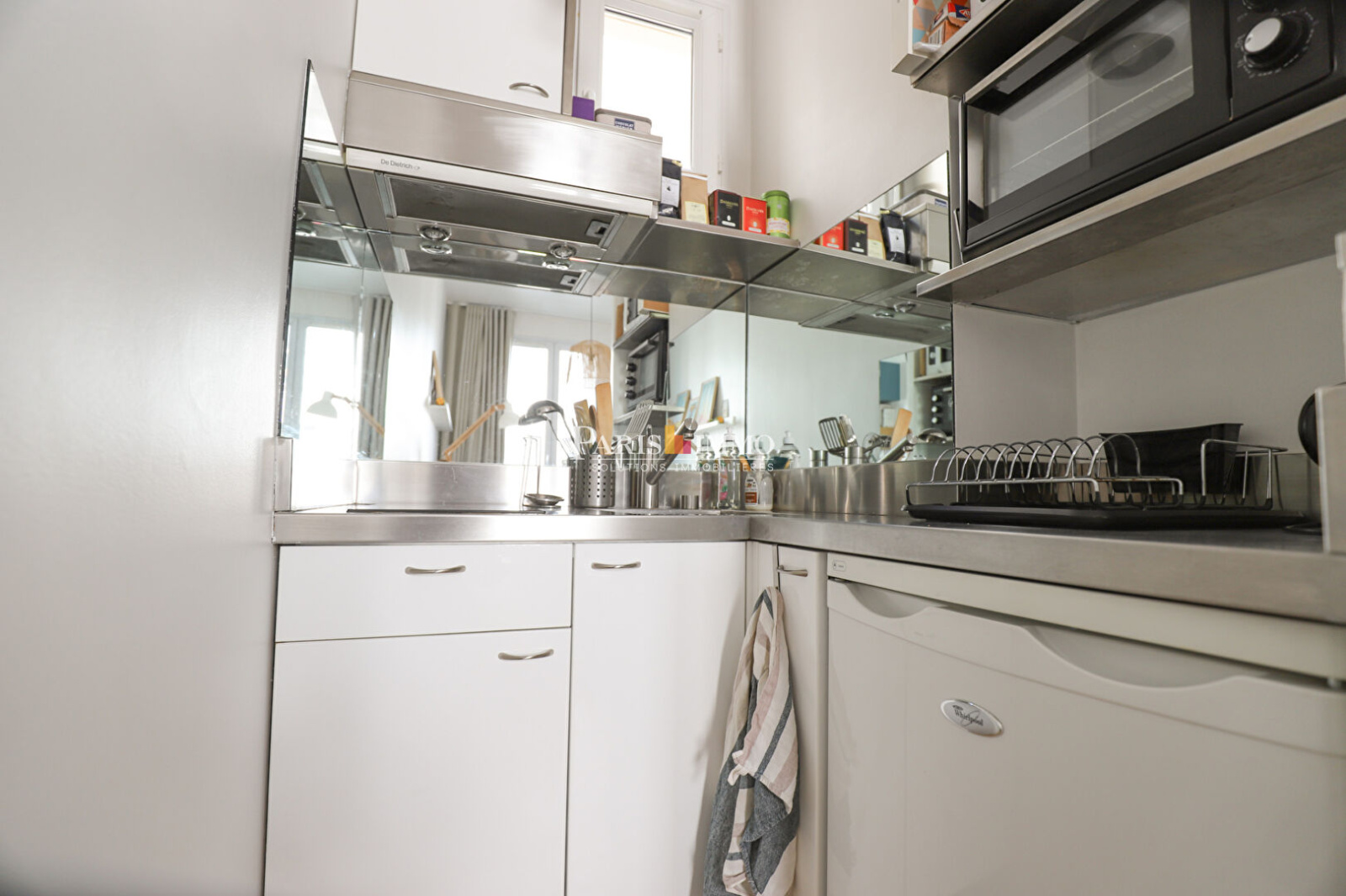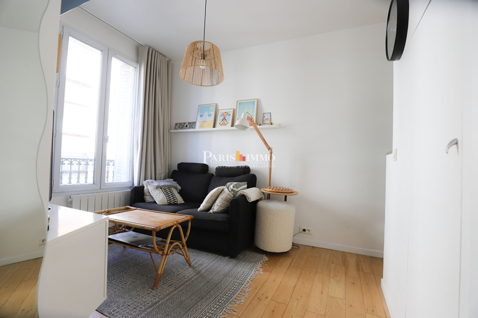 (75018)Comprenant une petite entrée avec espace de rangements, un séjour avec cuisine ouverte aménagée, une chambre avec dressing, une salle d'eau, W-C séparés et une cave.