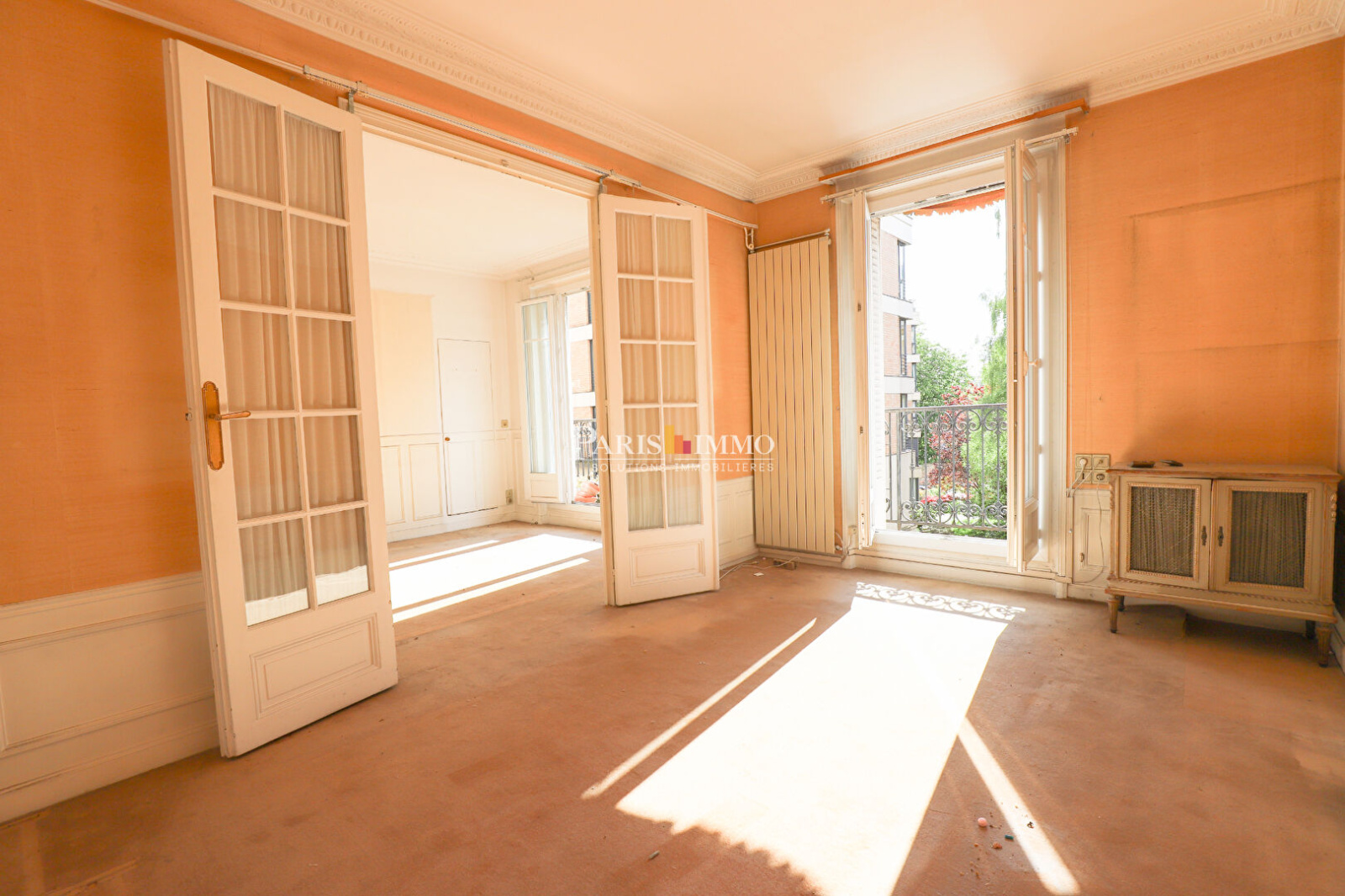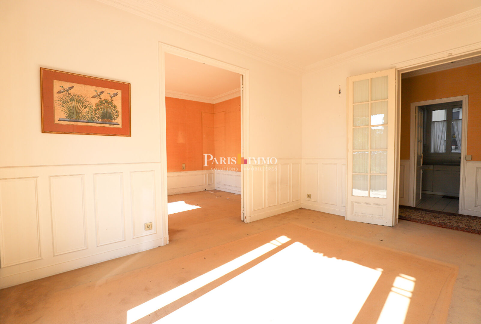 Parquet moulures, charme de l'ancien et baigné de soleil. Belle hauteur sous plafond.