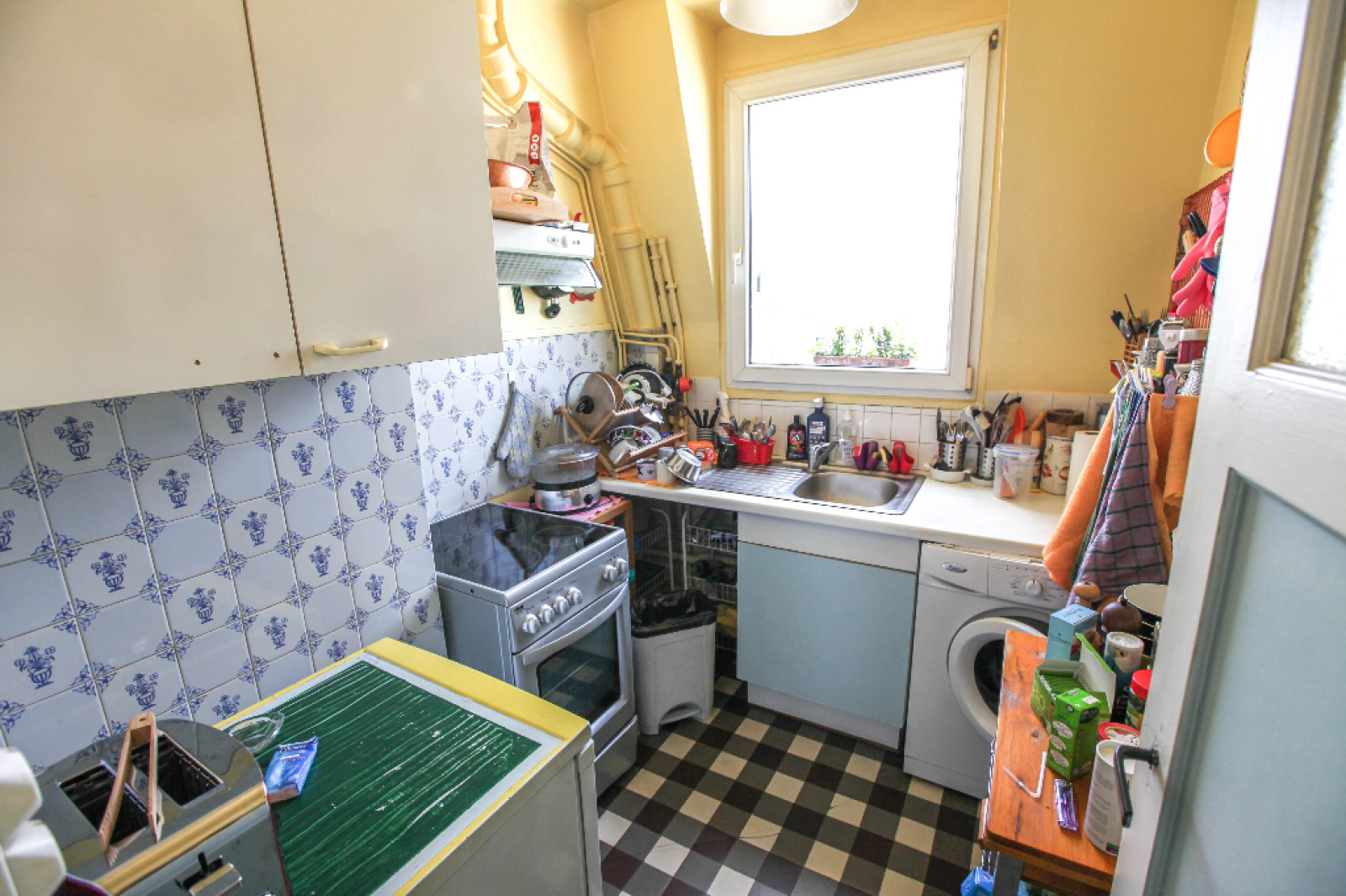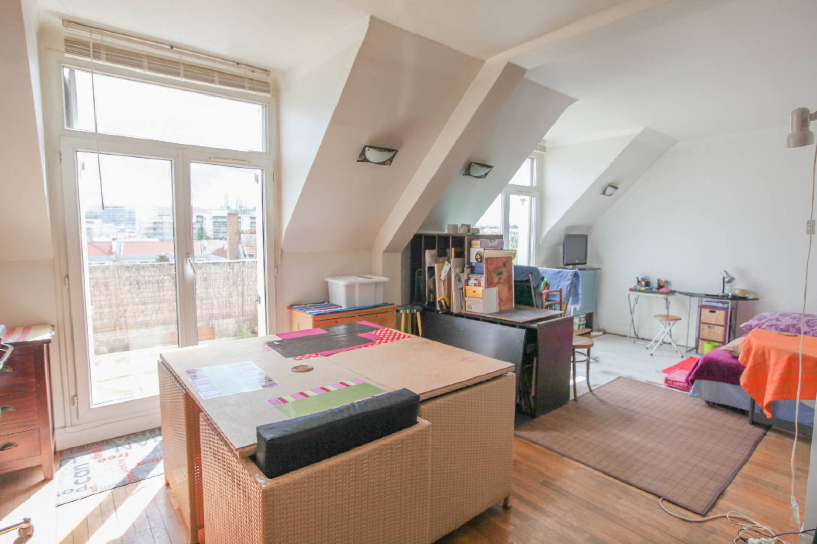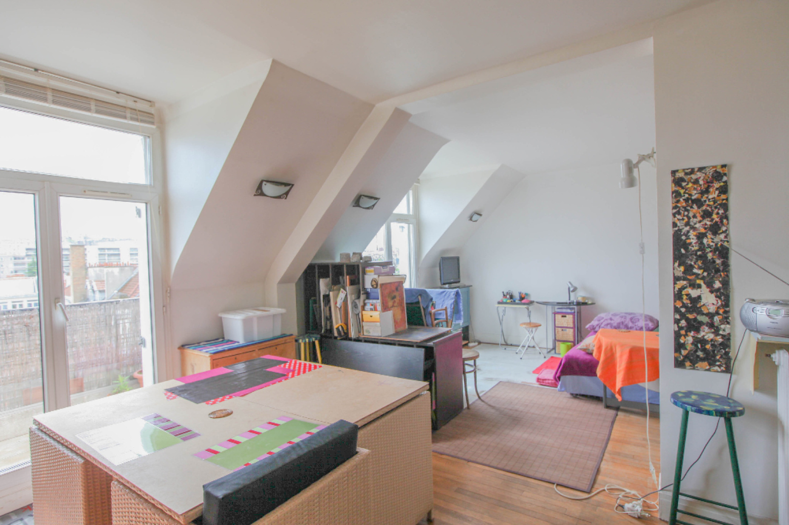 PARIS IMMO vous propose un 2/3 pièces de 48m2 en dernier étage avec ascenseur (58m2 au sol) avec joli balcon filant d'un bel immeuble de standing. Entrée, séjour double sur balcon (possibilité 2è chambre), cuisine, chambre, salle de bains avec WC et cave. Vue complètement dégagée et sans vis-à-vis, baigné de lumière, à visiter sans tarder!!!!!!