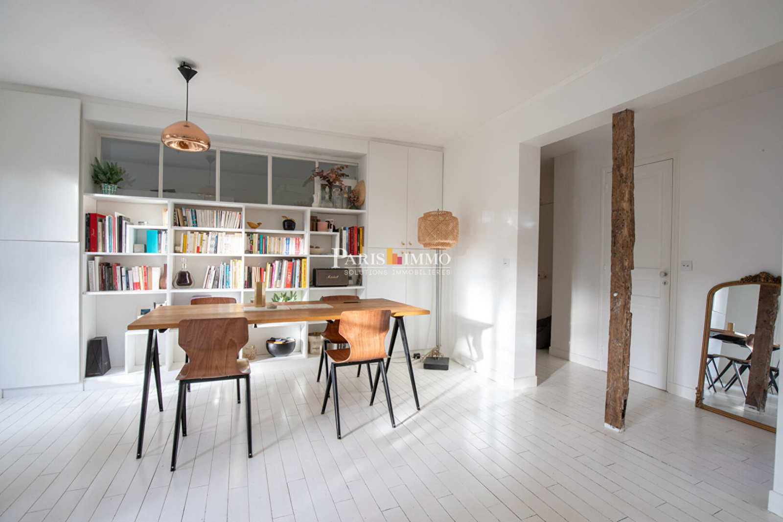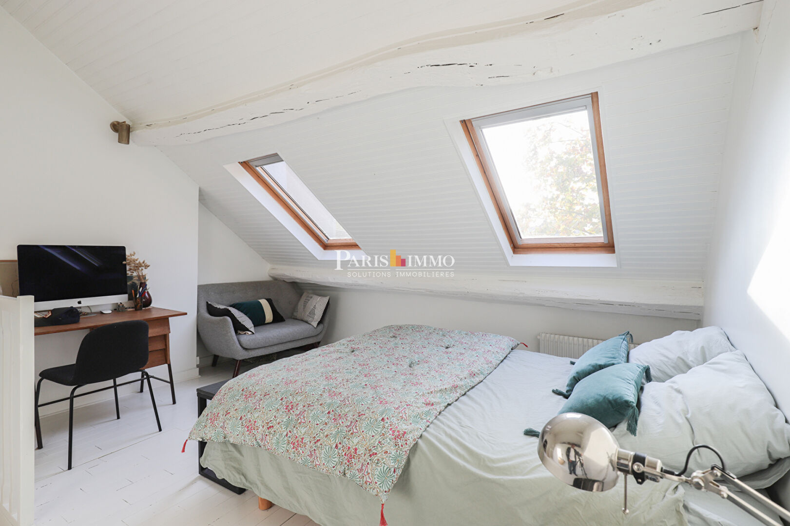 Traversant et exposé Ouest-Est, il séduit par sa luminosité, sa vue dégagée sur les arbres et son authenticité avec de belles poutres apparentes.